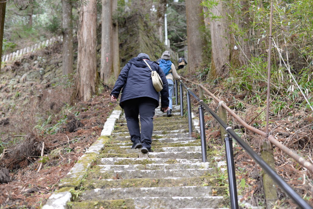 別名嫗岳大明神と呼ばれる健男霜凝日子神社は、雨霜や風雪を司る天候の守護神とされています。祖母山頂に石祠の上宮、穴森神社(中宮)、そしてこのすぐ近くには遥拝所(神幸所)があります。元々は、下宮が祭祀の中心でしたが、現在は遥拝所がその中心となっており、9月23日の秋祭り(例大祭)が執り行われます。祖母山の神原登山口に向かう道路沿に鳥居があり、約200段の急な石段を登った上にあります。社が洞窟の中に建てられていて独特で、社の横手には、はっきりとした地層が見られる貴重な場所です。もちろん眺めも良く、樹々の間から祖母山を見ることが出来ます。同境内には、嫗岳稲荷社も。少し俗世間から離れたような、厳かな雰囲気を感じられる場所です。